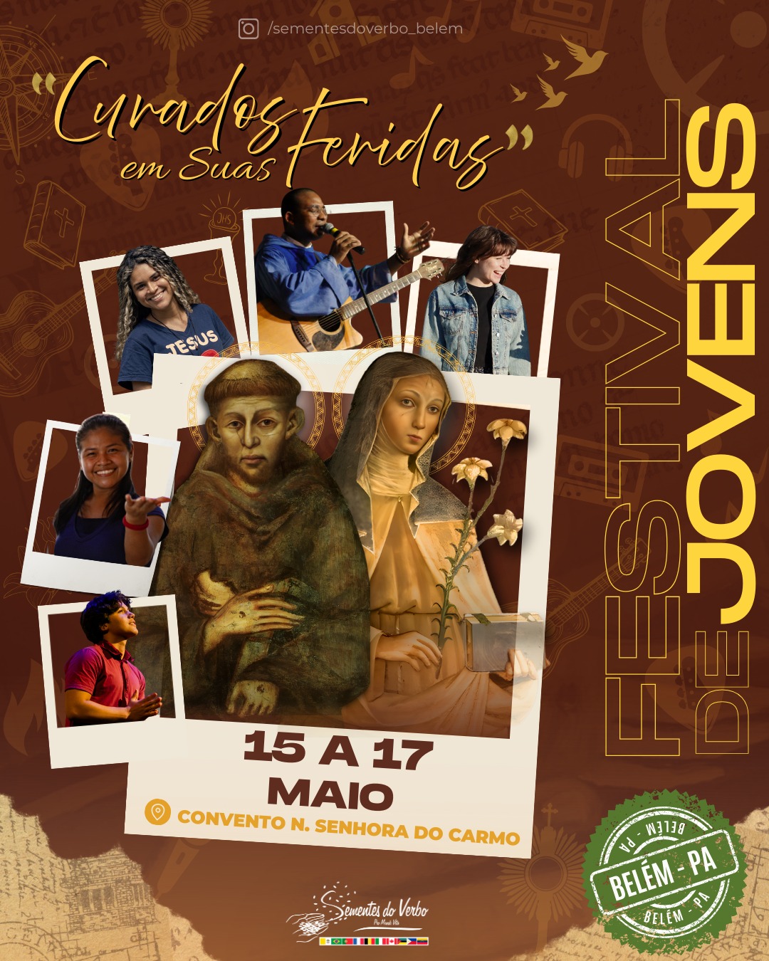 O Festival de Jovens é o encontro anual da juventude Sementes do Verbo, que desejam uma experiência de profundidade com a Palavra de Deus. Acontecerá nos dias 15 a 17 de Maio, na Casa de Retiros Convento Nossa Senhora do Carmo. O Festival é marcado por formações, partilhas, liturgia, oficinas artísticas e muito mais!